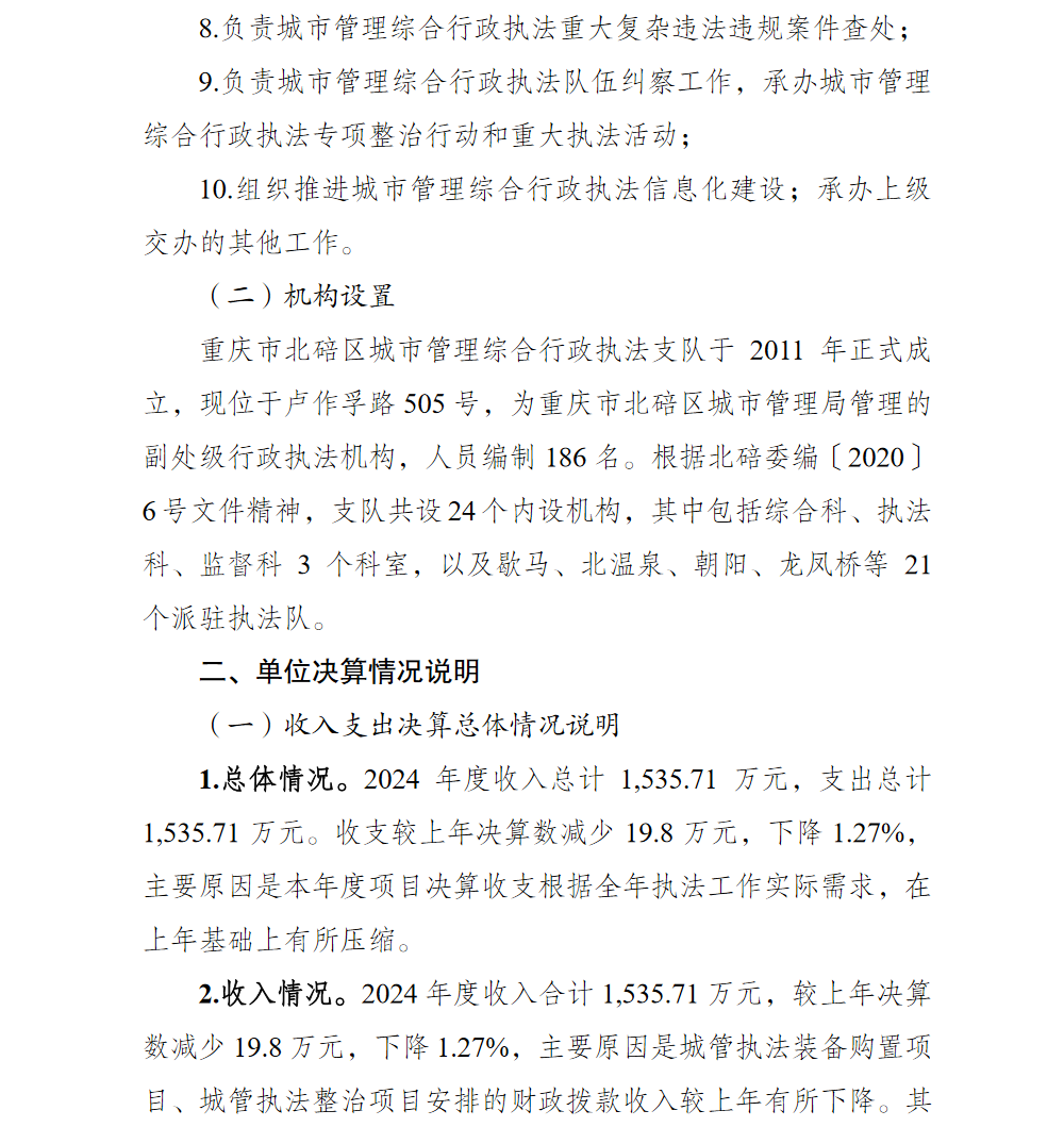 重庆市北碚区城市管理综合行政执法支队2024年单位决算情况说明及附表.pdf