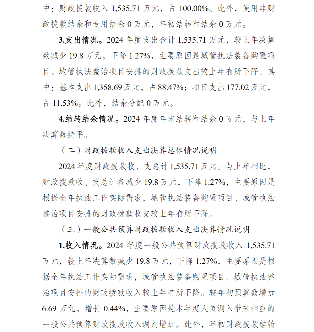 重庆市北碚区城市管理综合行政执法支队2024年单位决算情况说明