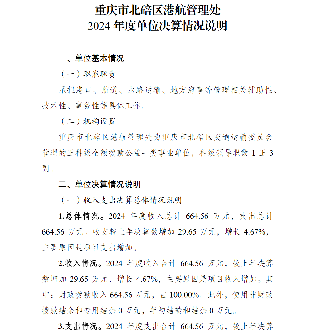 重庆市北碚区港航管理处2024年单位决算情况说明