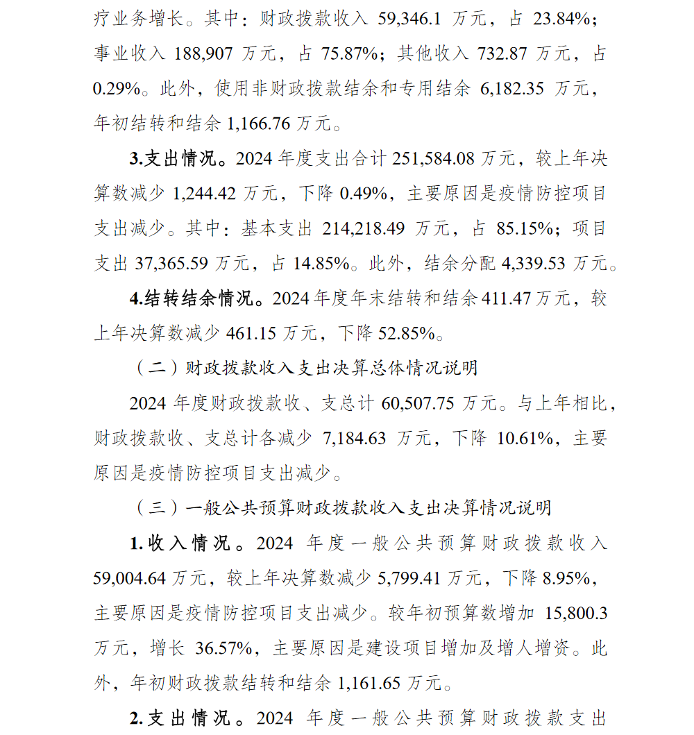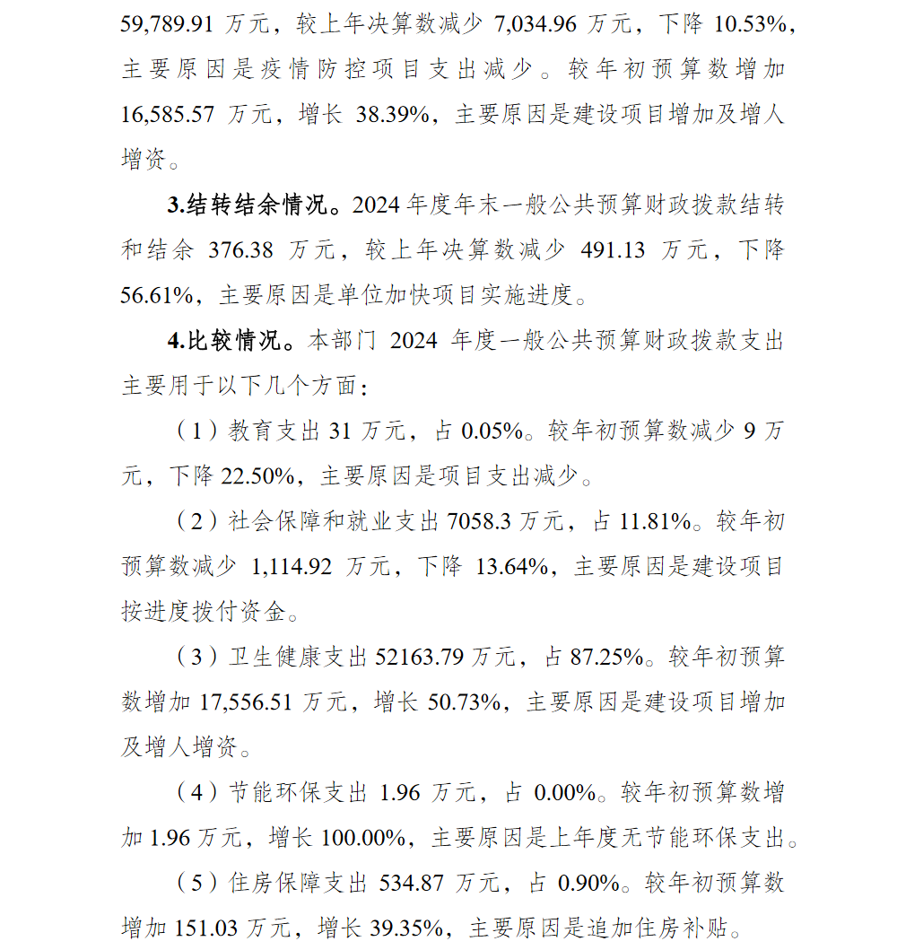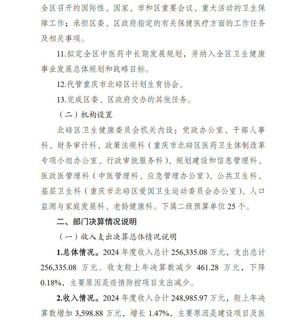 重庆市北碚区卫生健康委2024年部门决算情况说明