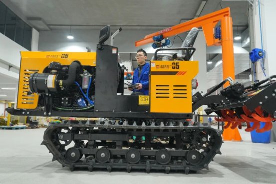 在重庆市北碚区的重庆茂田机械公司生产车间,技术工人在调试多功能自走式履带旋耕机。记者 秦廷富 摄