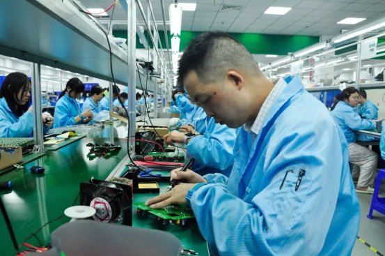 在剑涛物联生产线,工作人员正在赶制订单。记者 韦玉婷 摄