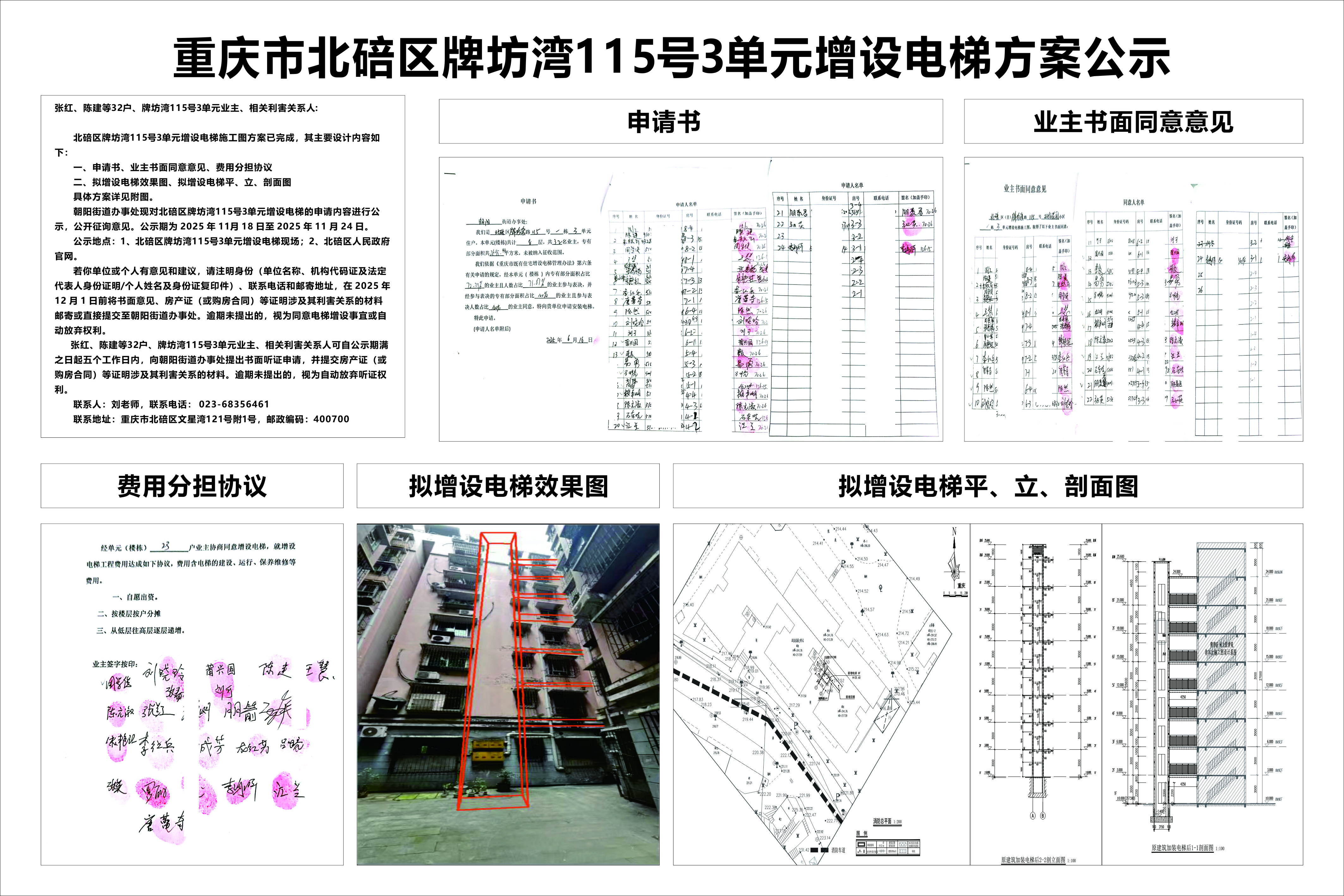 重庆市北碚区牌坊湾115号3单元增设电梯方案公示