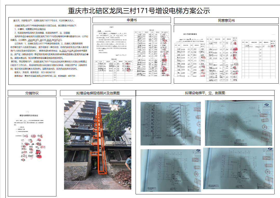 重庆市北碚区龙凤三村171号增设电梯方案公示