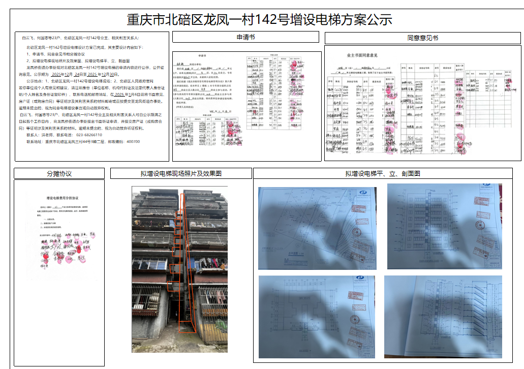 重庆市北碚区龙凤一村142号增设电梯方案公示