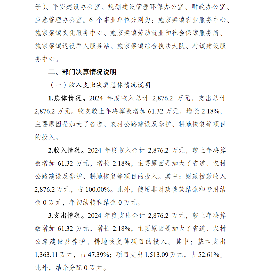 重庆市北碚区施家梁镇人民政府2024年部门决算情况说明