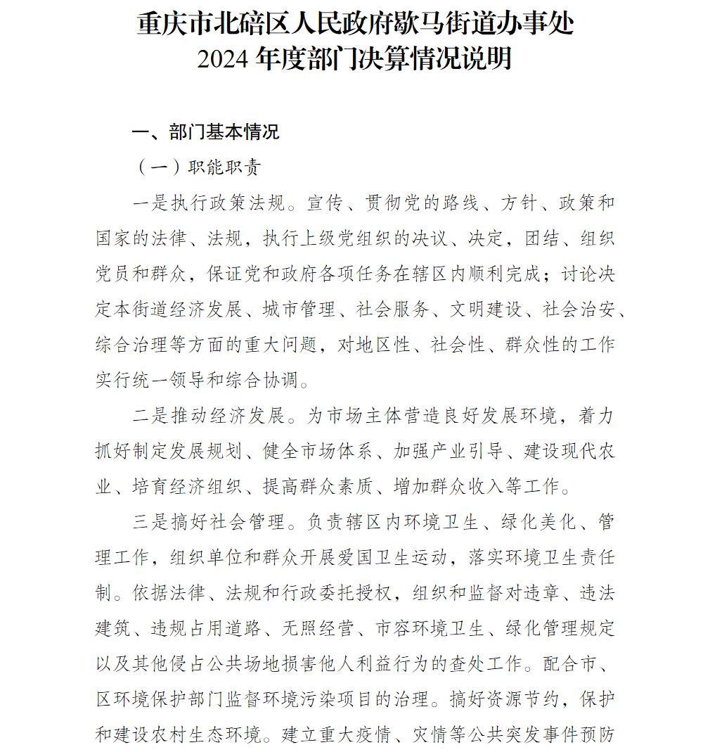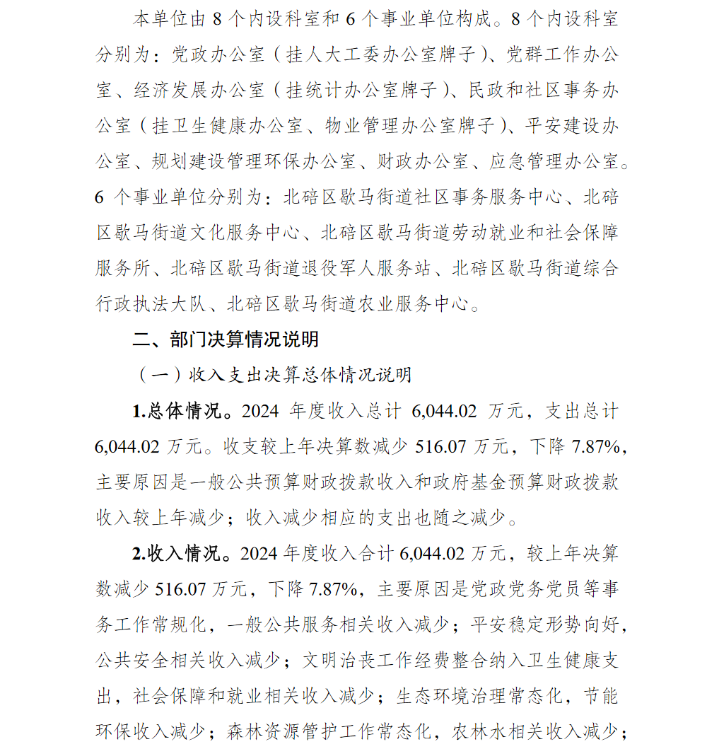 重庆市北碚区人民政府歇马街道办事处2024年部门决算情况说明