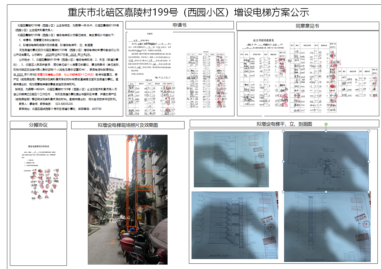重庆市北碚区嘉陵村199号(西园小区)增设电梯方案公示