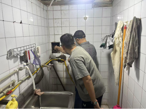 奔月路社区开展“民呼我为”工作。工作人员在接到居民关于家中漏水的来电后,第一时间赶赴现场查看漏水情况,迅速分析原因并提出针对性解决方案,及时为居民排忧解难,保障居民正常生活秩序。