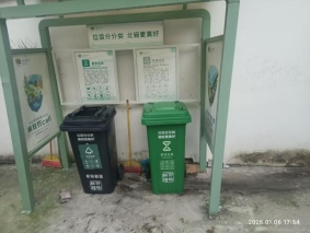 (二)对辖区三无小区分类设施进行保洁,累计分类桶279个,分类亭41个。