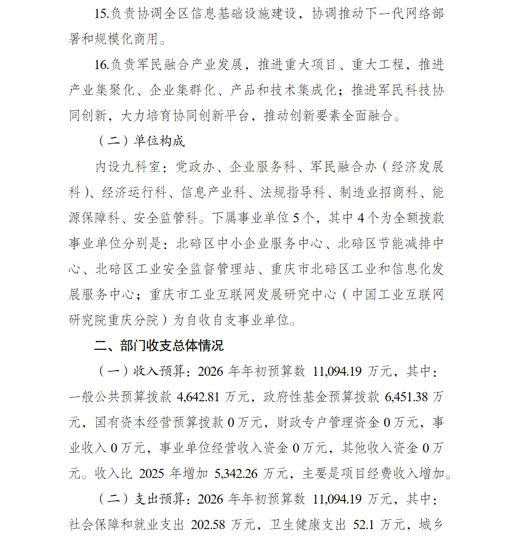 重庆市北碚区经济和信息化委员会2026年部门预算情况说明