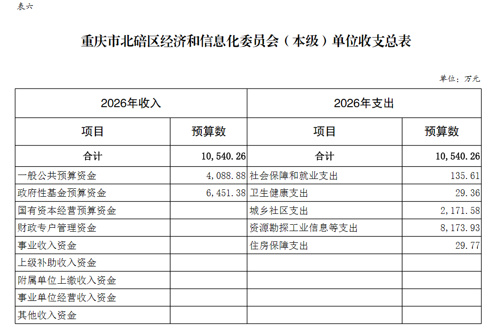 重庆市北碚区经济和信息化委员会(本级)2026年单位预算情况说明