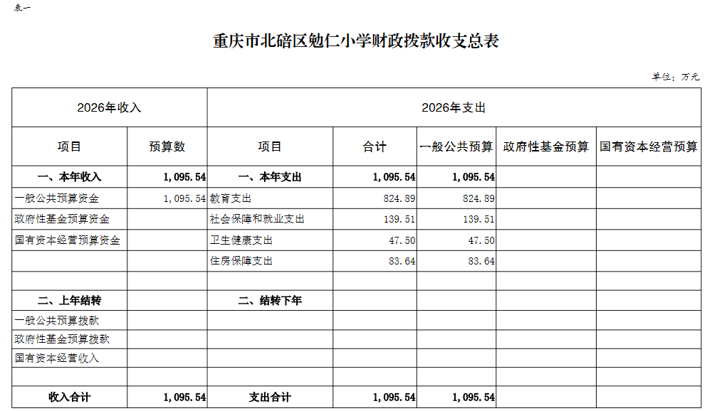 重庆市北碚区勉仁小学2026年单位预算情况说明及附表.pdf