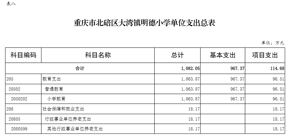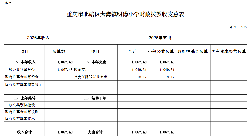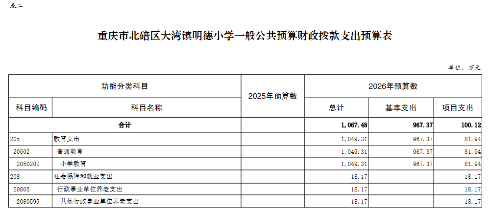 重庆市北碚区大湾镇明德小学2026年单位预算情况说明