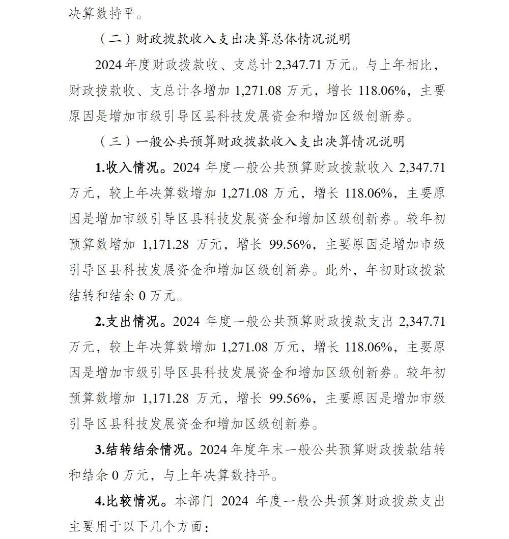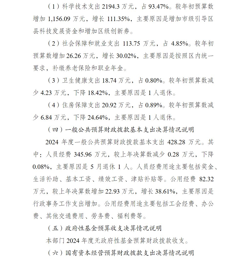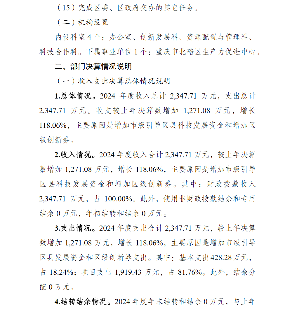 重庆市北碚区科学技术局2024年部门决算情况说明