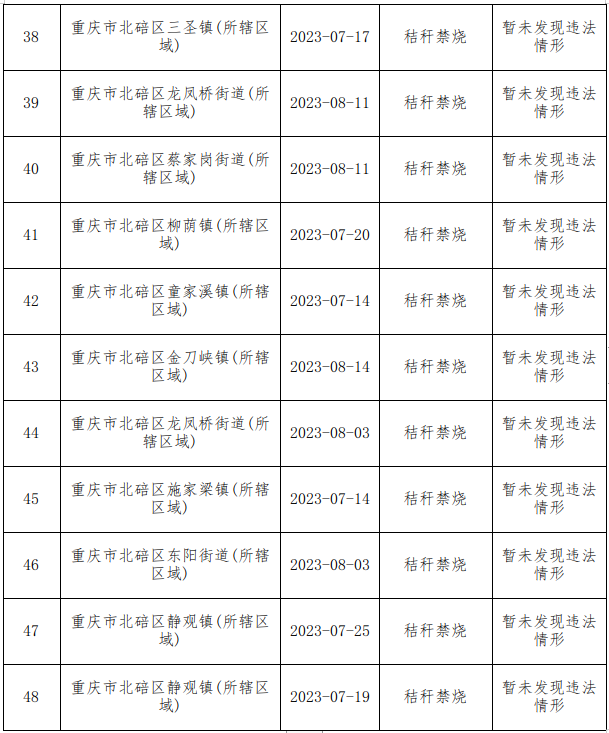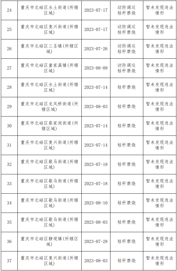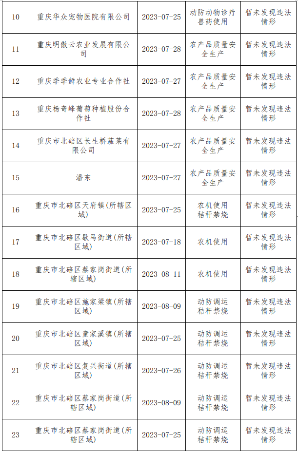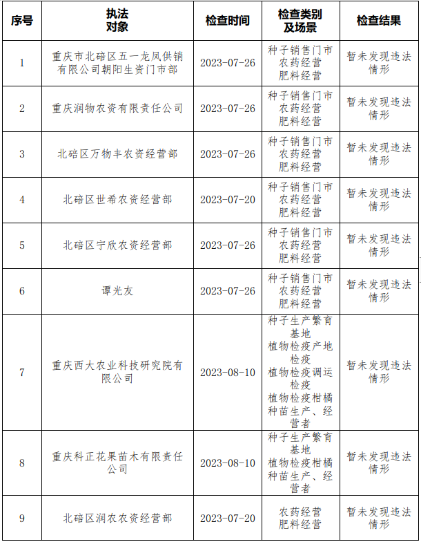 北碚区农业综合行政执法支队现场执法检查情况汇总