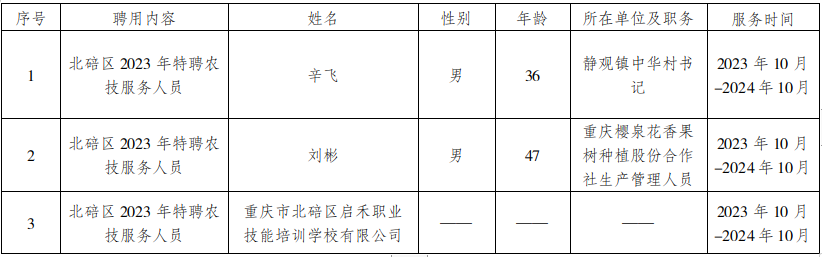 北碚区2023年特聘农技服务人员及管理服务公司评审结果