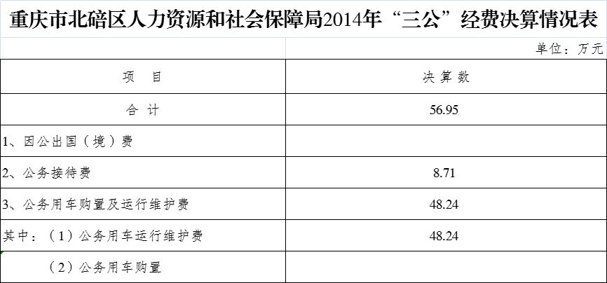 北碚区人力资源和社会保障局2014年“三公”经费决算情况表