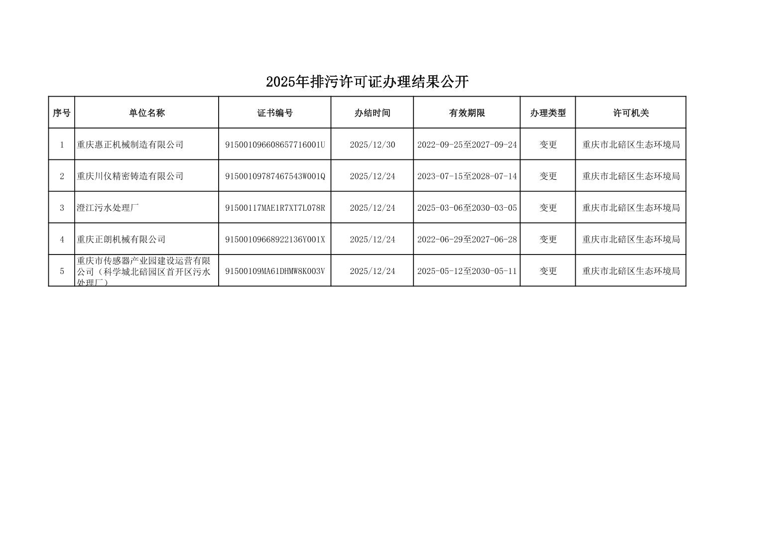 2025年排污许可证办理结果公开(20251231)