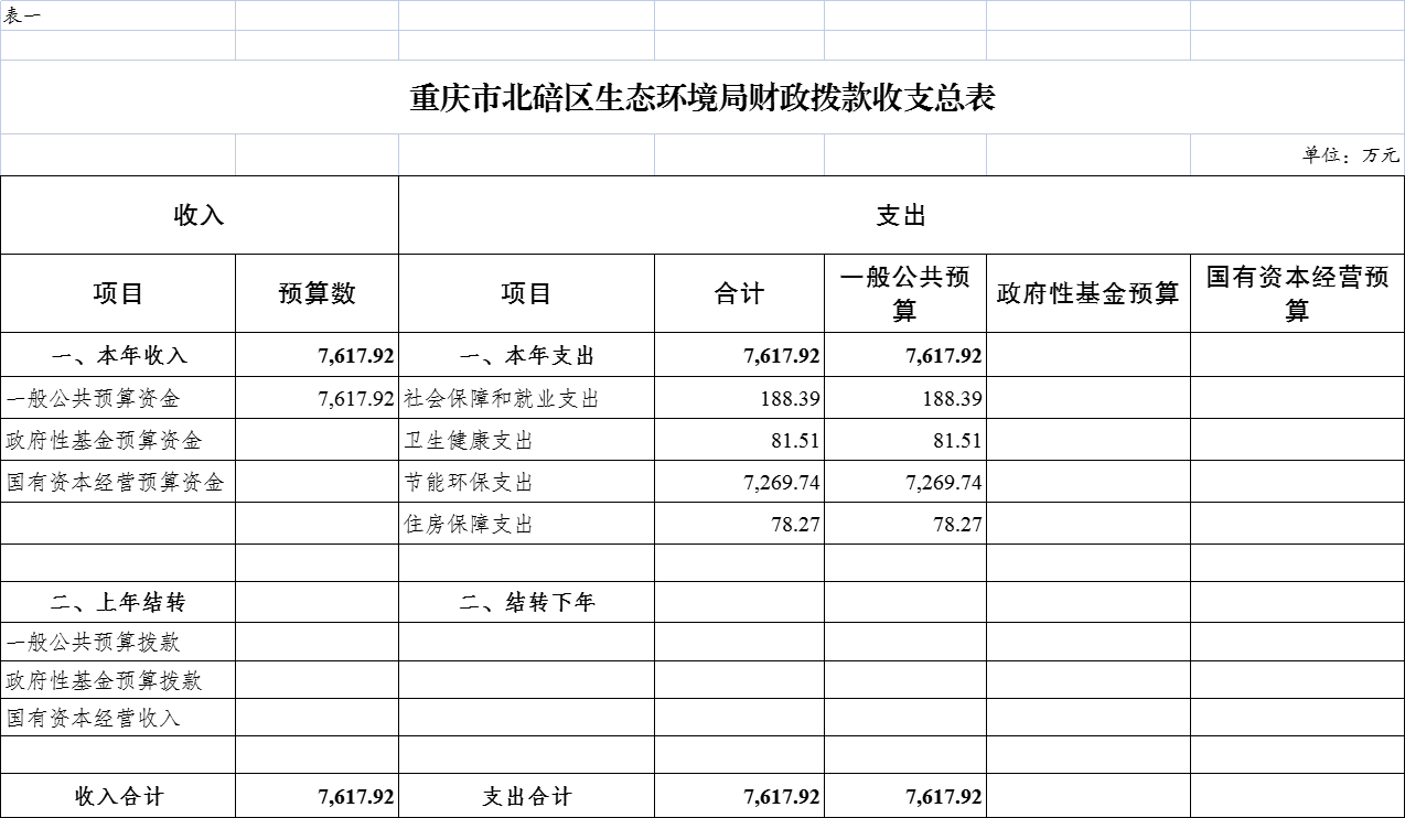 2022年一般公共预算财政拨款收入7617.92万元,一般公共预算财政拨款支出7617.92万元,比2021年增加1021.6万元。其中:基本支出1953.72万元,比2021年增加67.15万元,主要原因是增人增资以及物价上涨导致商品及服务支出增加等,主要用于保障在职人员工资福利及社会保险缴费,退休人员补助等,保障部门正常运转的各项商品服务支出;项目支出5664.2万元,比2021年增加954.45万元,主要原因是环保工作力度加大,为给辖区内人民群众营造良好的生态环境等,主要用于水污染防治、大气污染防治以及土壤污染防治等重点工作。