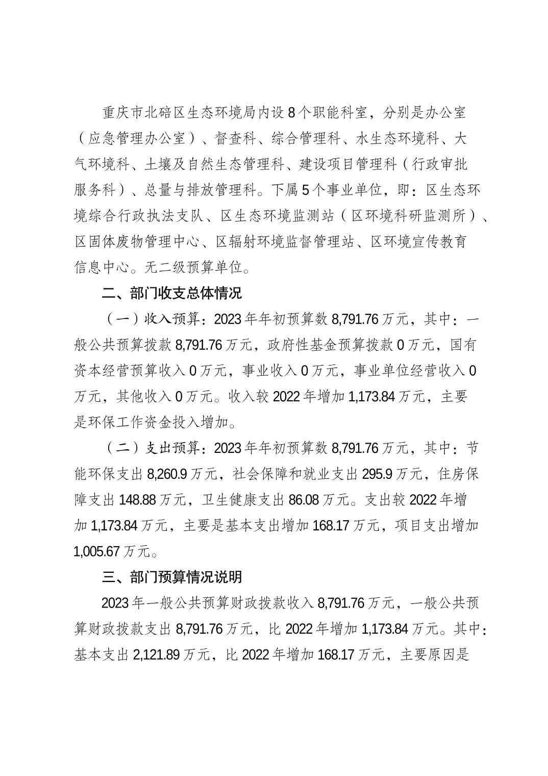 重庆市北碚区生态环境局2023年部门预算情况说明