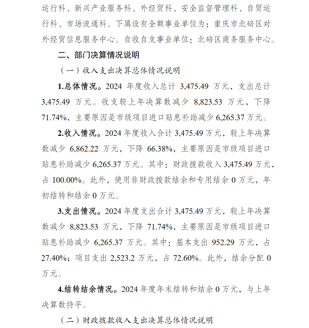 重庆市北碚区商务委员会2024年部门决算情况说明