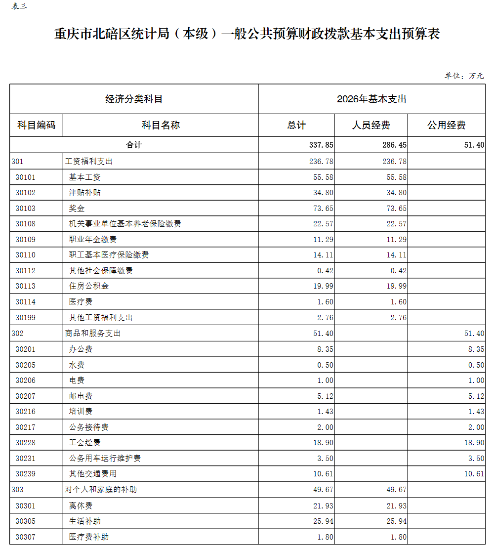 重庆市北碚区统计局(本级)2026年单位预算情况说明