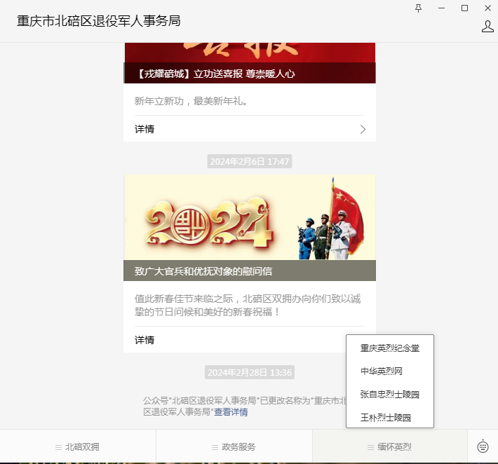 3.重庆市北碚区退役军人事务局微信公众号-中华英烈网(重庆英烈纪念堂)。