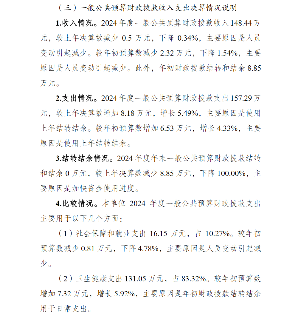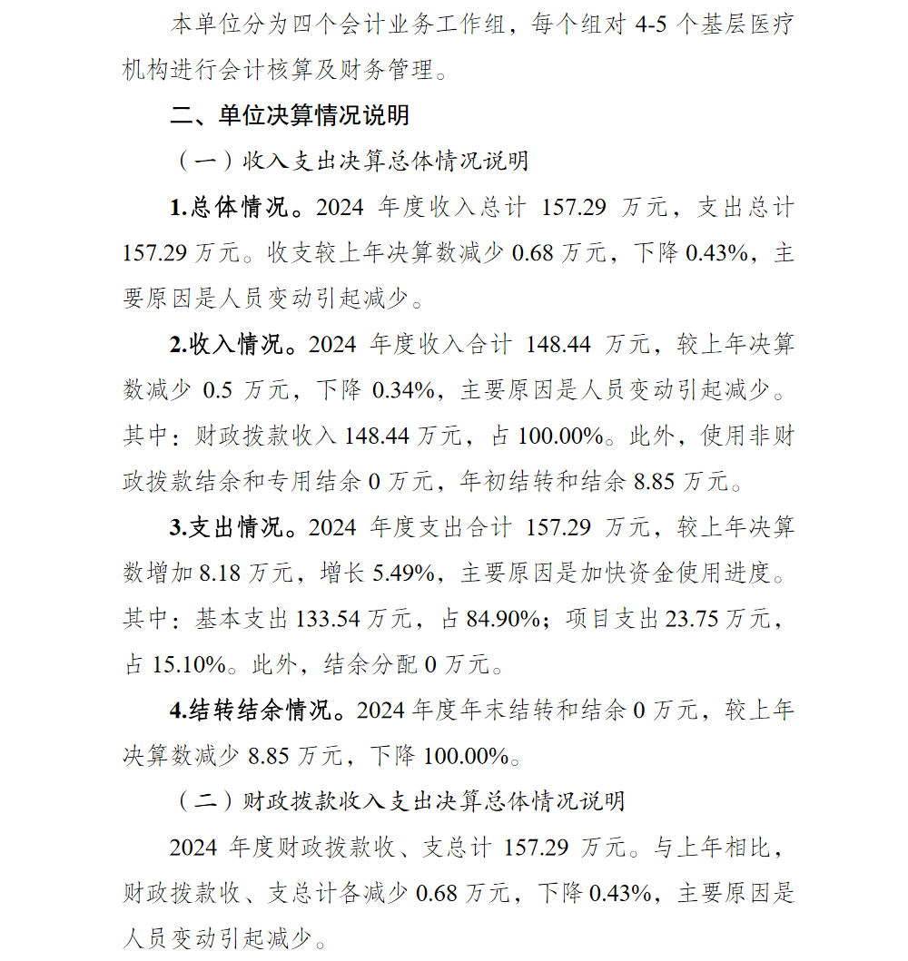 重庆市北碚区基层医疗卫生机构会计核算管理中心2024年单位决算情况说明