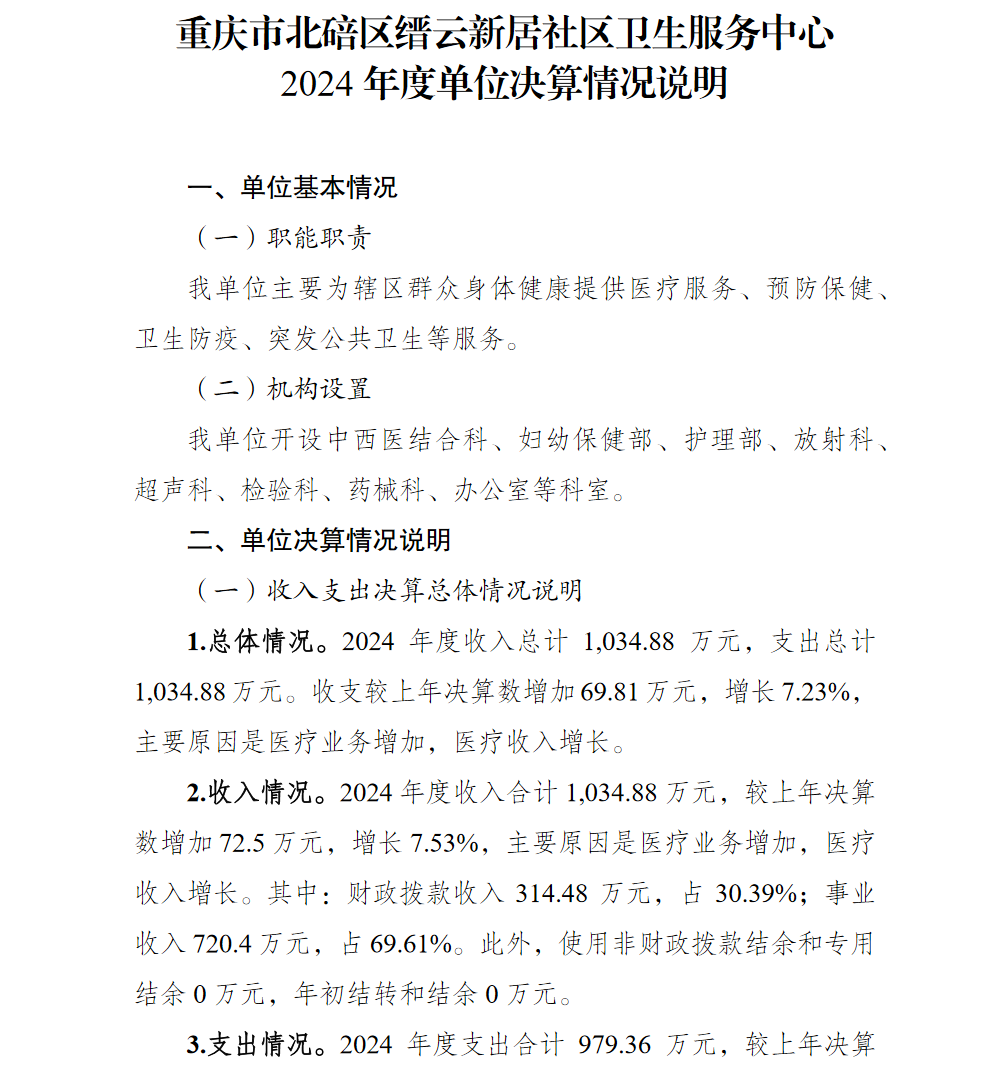 重庆市北碚区缙云新居社区卫生服务中心2024年单位决算情况说明及附表.pdf