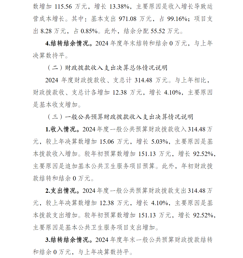 重庆市北碚区缙云新居社区卫生服务中心2024年单位决算情况说明