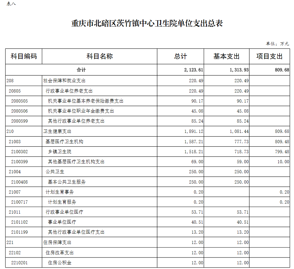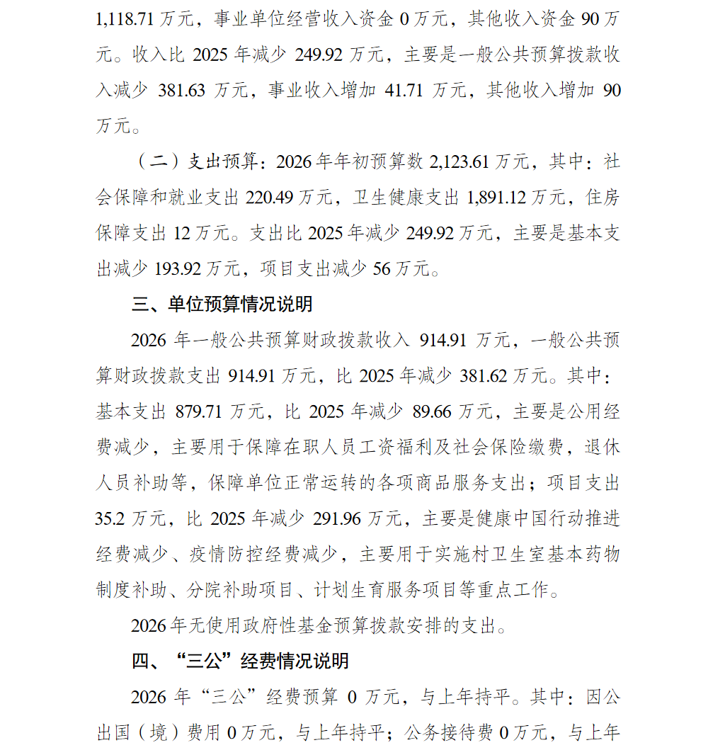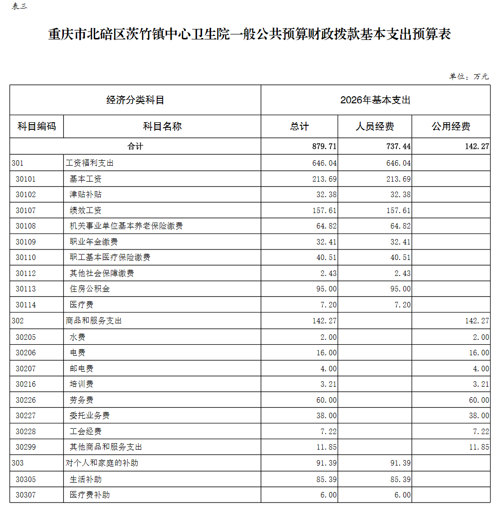 重庆市北碚区茨竹镇中心卫生院2026年单位预算情况说明及附表
