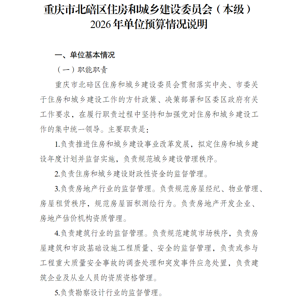 重庆市北碚区住房和城乡建设委员会(本级)2026年单位预算情况说明