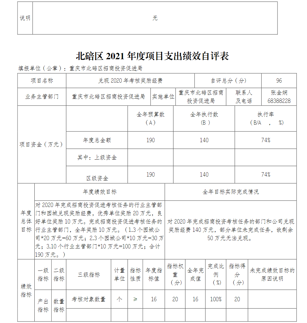 重庆市北碚区招商投资促进局2021年度部门决算情况说明