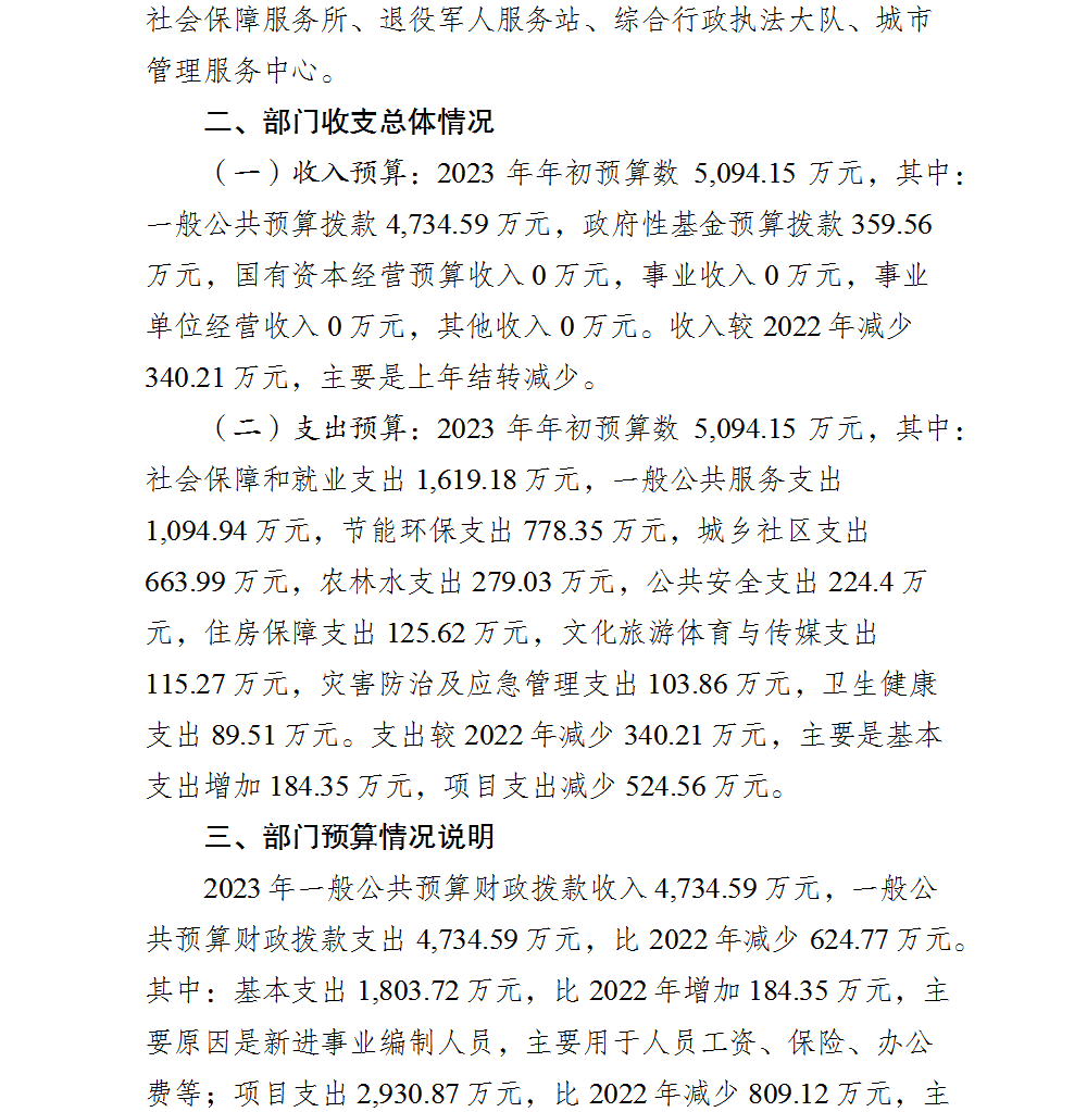 重庆市北碚区人民政府北温泉街道办事处2023年部门预算情况说明