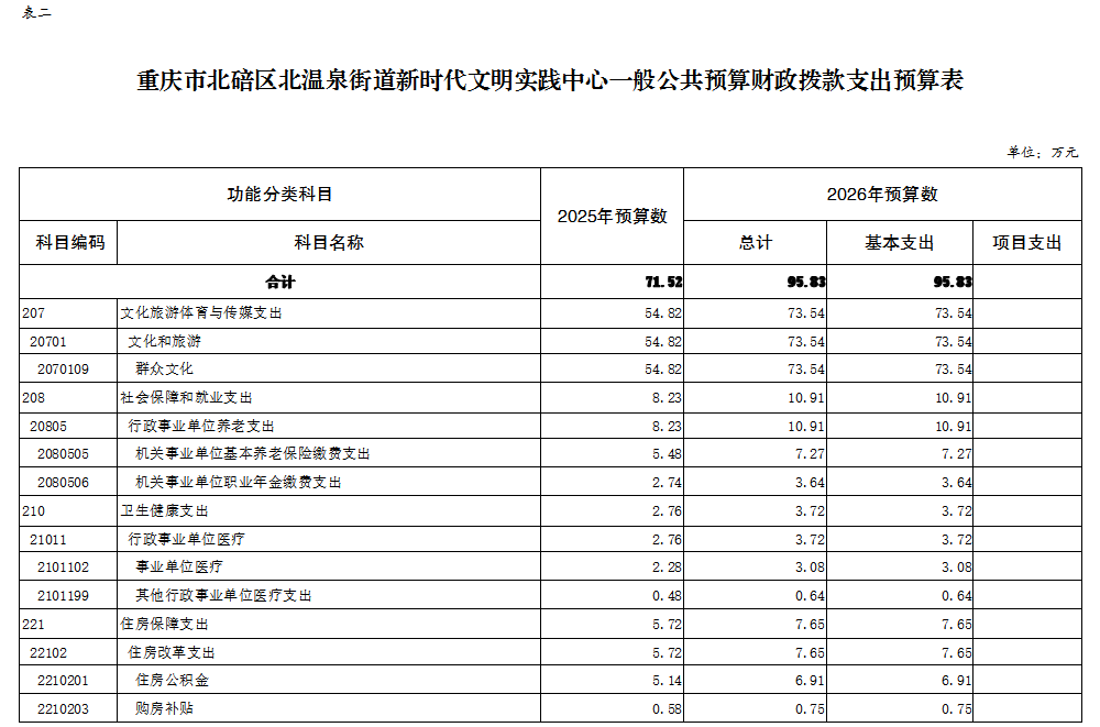 重庆市北碚区北温泉街道新时代文明实践中心2026年单位预算情况说明及附表.pdf