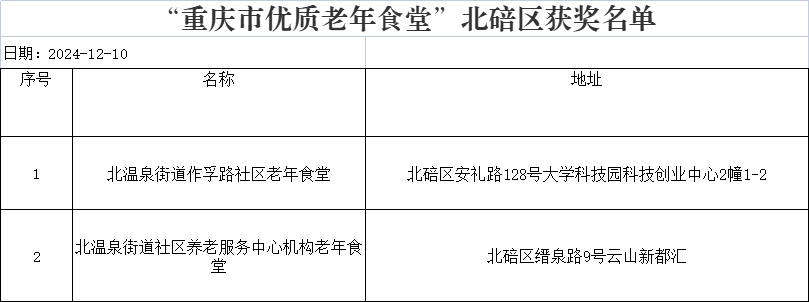 重庆市优质老年食堂北碚区获奖名单