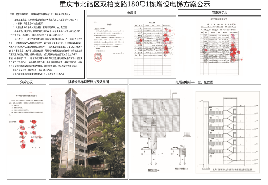 重庆市北碚区双柏支路180号1单元增设电梯方案公示