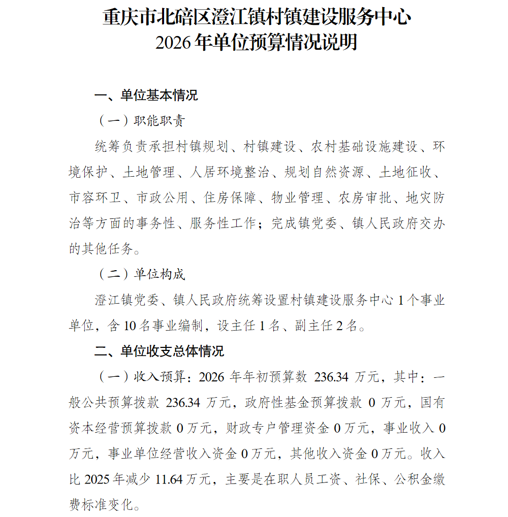 重庆市北碚区澄江镇村镇建设服务中心2026年单位预算情况说明及附表.pdf