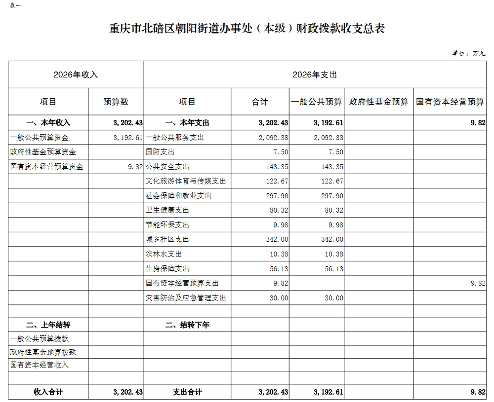 重庆市北碚区朝阳街道办事处(本级)2026年单位预算情况说明及附表.pdf