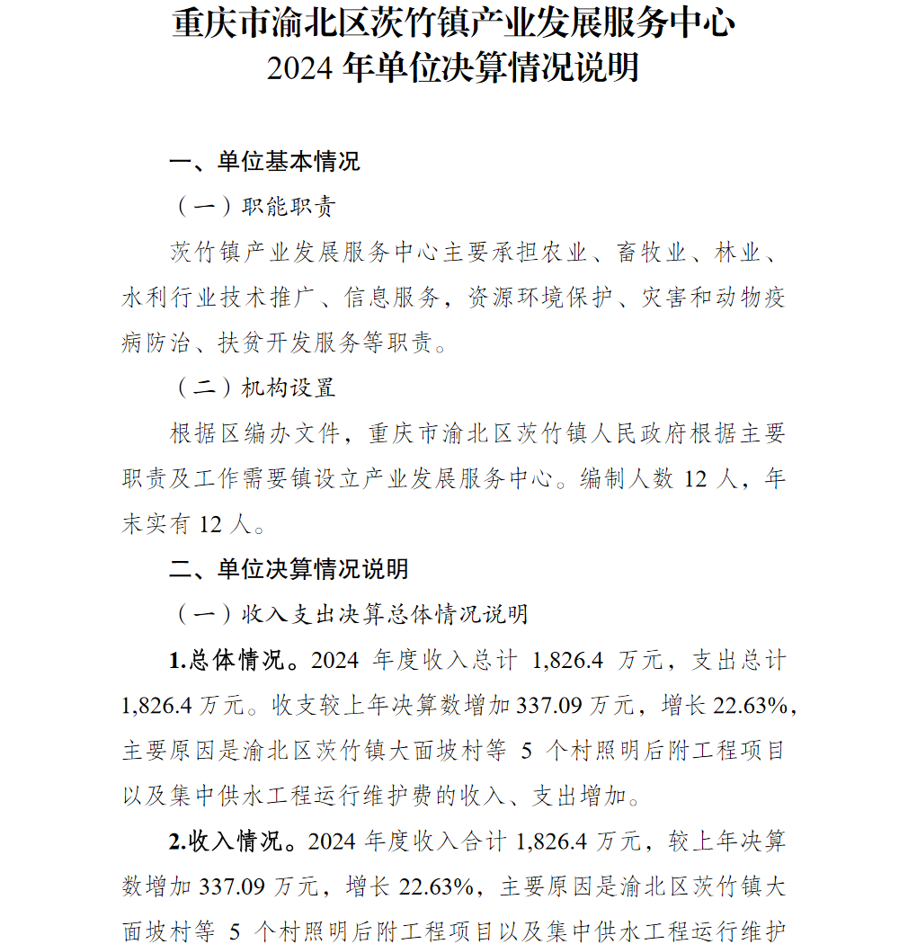 重庆市渝北区茨竹镇产业发展服务中心2024年单位决算情况说明及附表.pdf