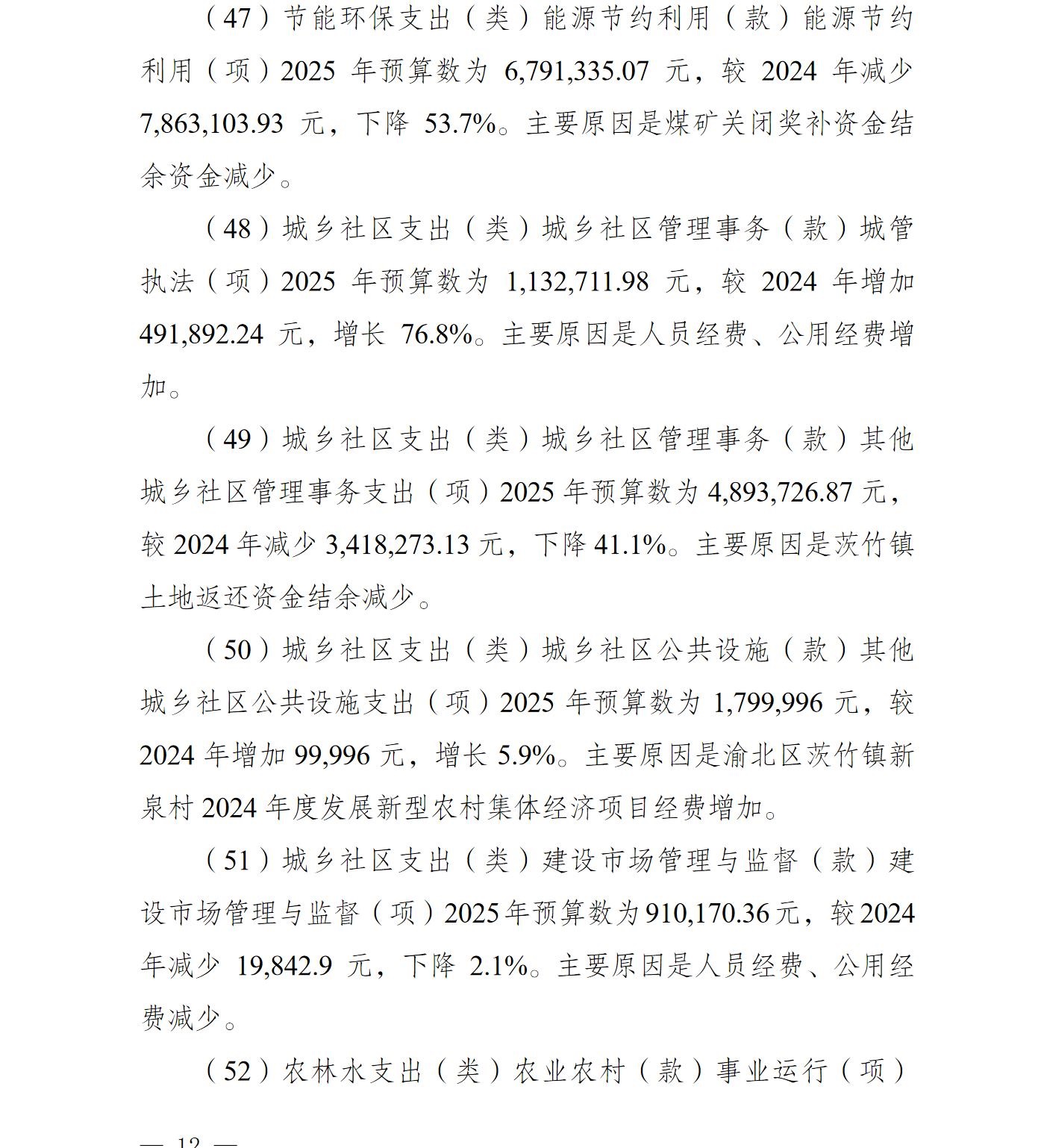重庆市渝北区茨竹镇人民政府2025年部门预算情况说明