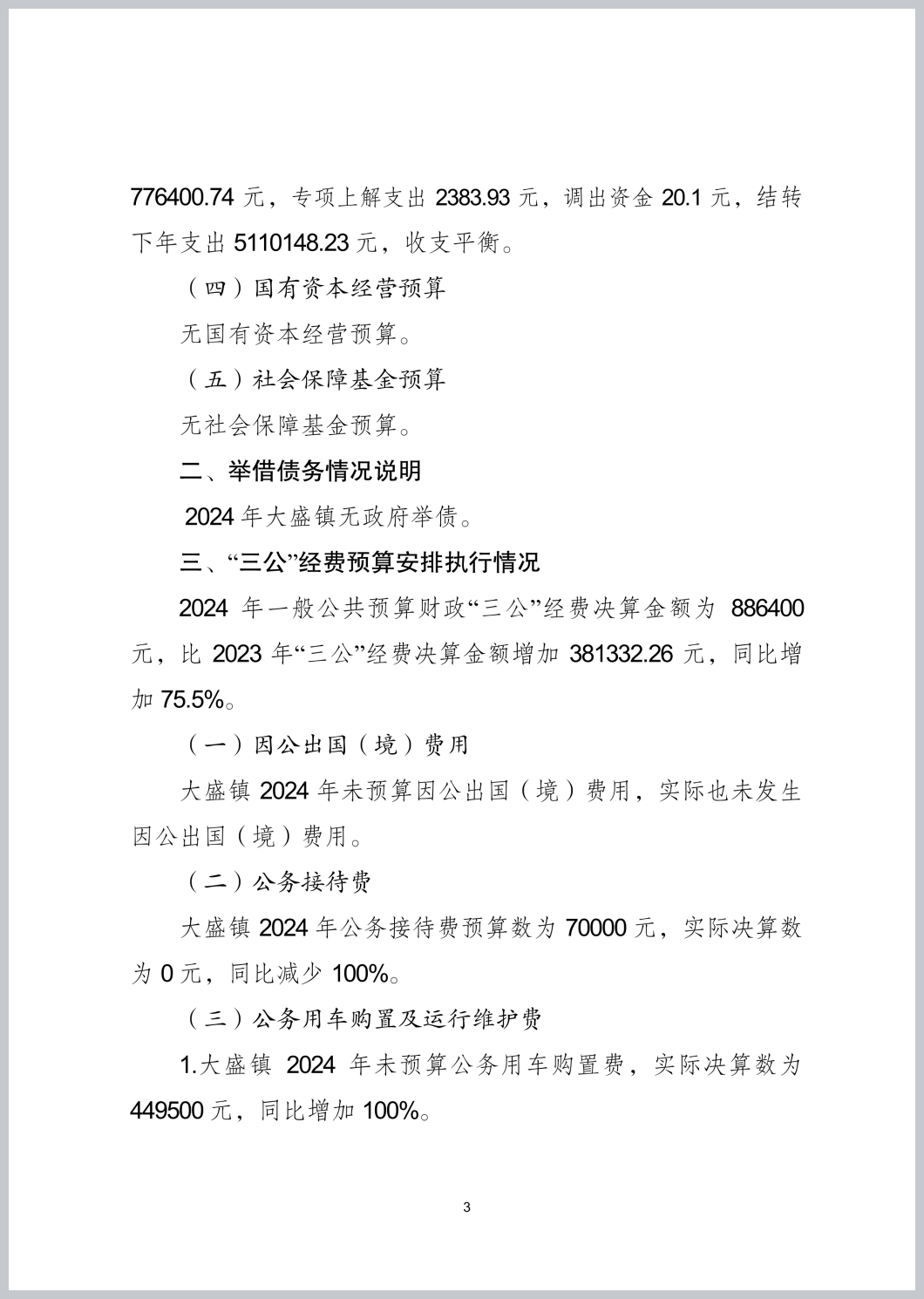 重庆市渝北区大盛镇人民政府2024年政府决算公开