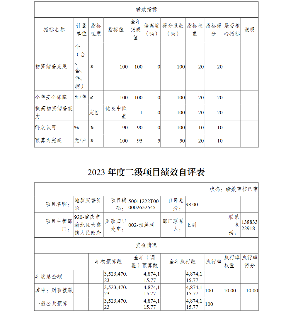 重庆市渝北区大盛镇人民政府(本级)2023年部门决算公开