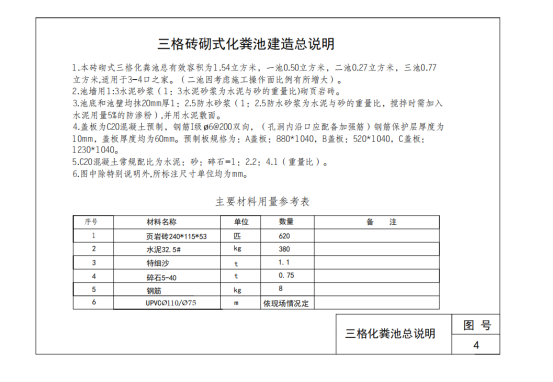 (五)三格式化粪池。按卫生健康委标准,严格做好三格式化粪池建设。