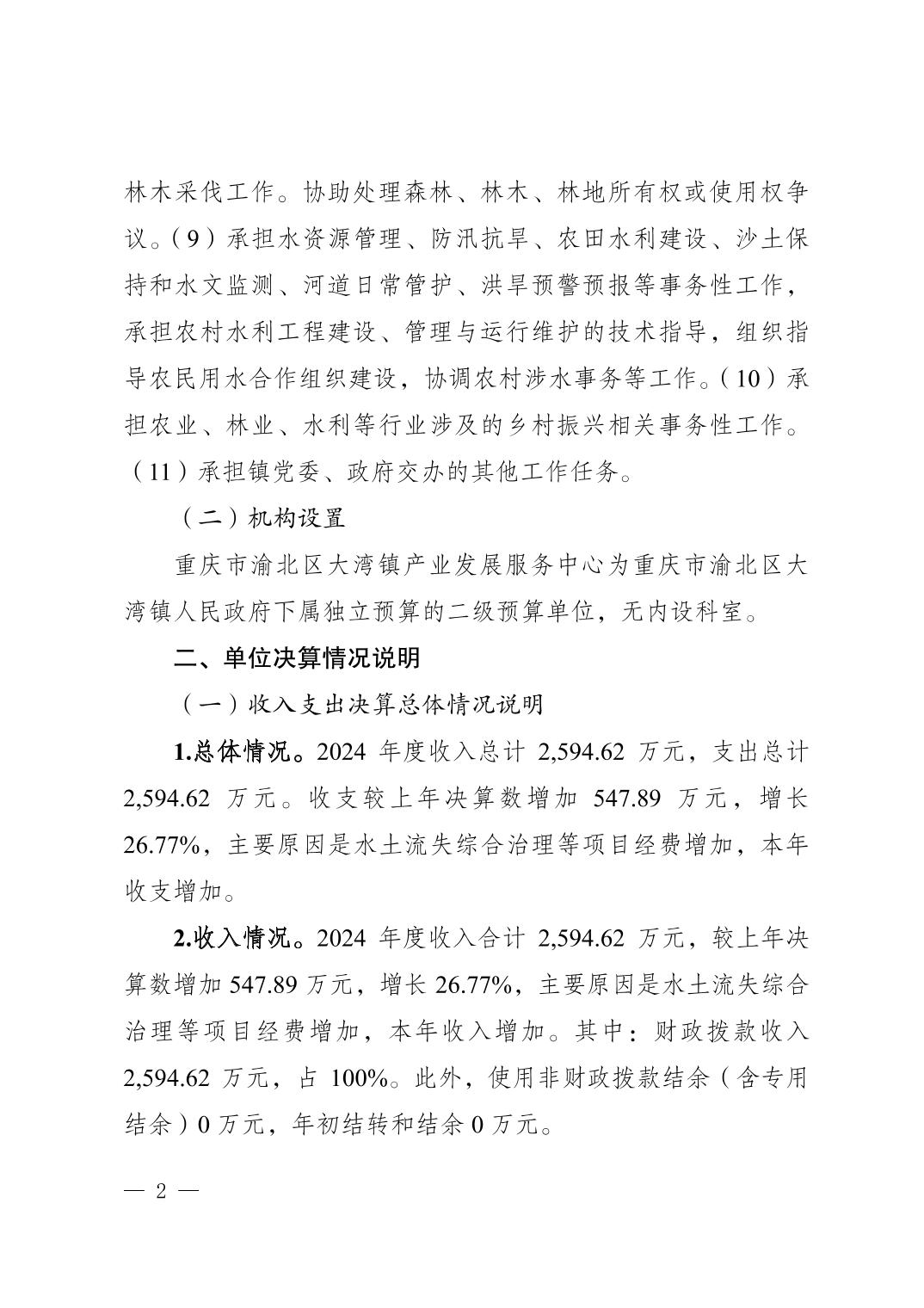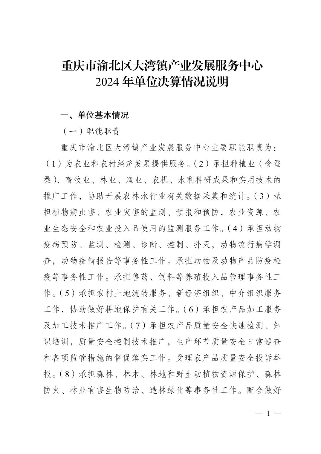 重庆市渝北区大湾镇产业发展服务中心2024 年单位决算情况说明