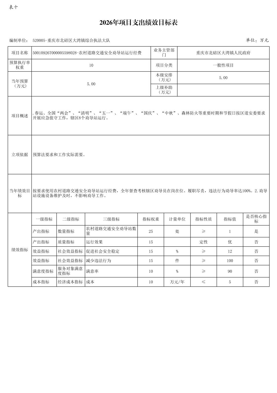 重庆市北碚区大湾镇综合执法大队 2026年单位预算情况说明