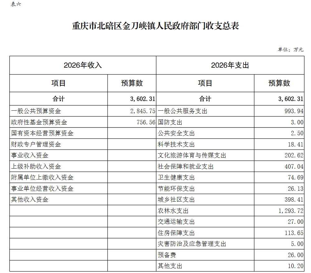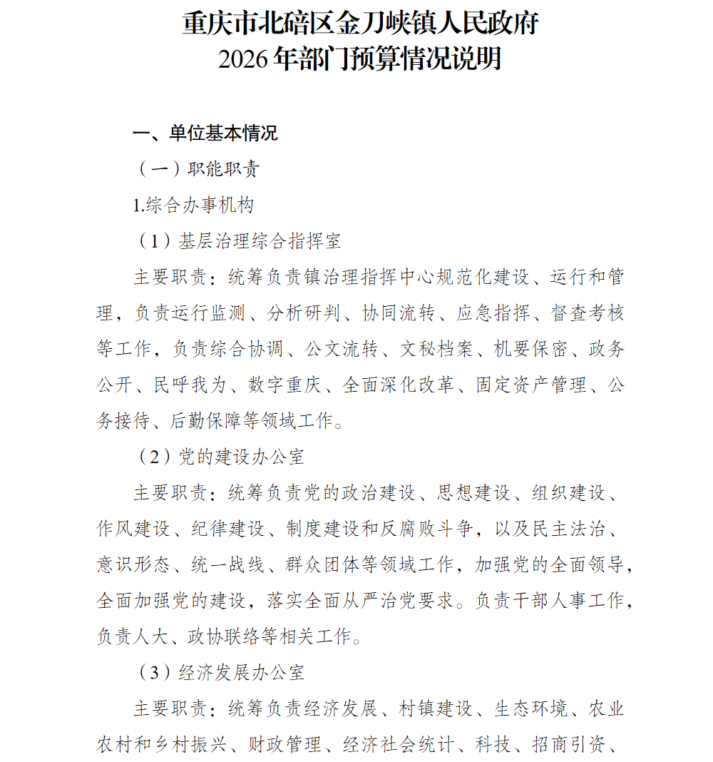 重庆市北碚区金刀峡镇人民政府2026年部门预算情况说明及附表.pdf