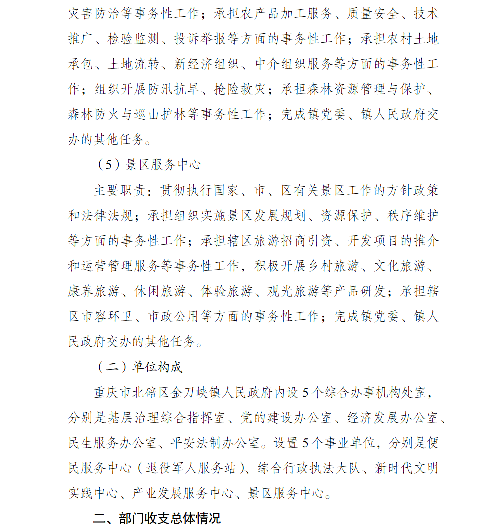 重庆市北碚区金刀峡镇人民政府2026年部门预算情况说明