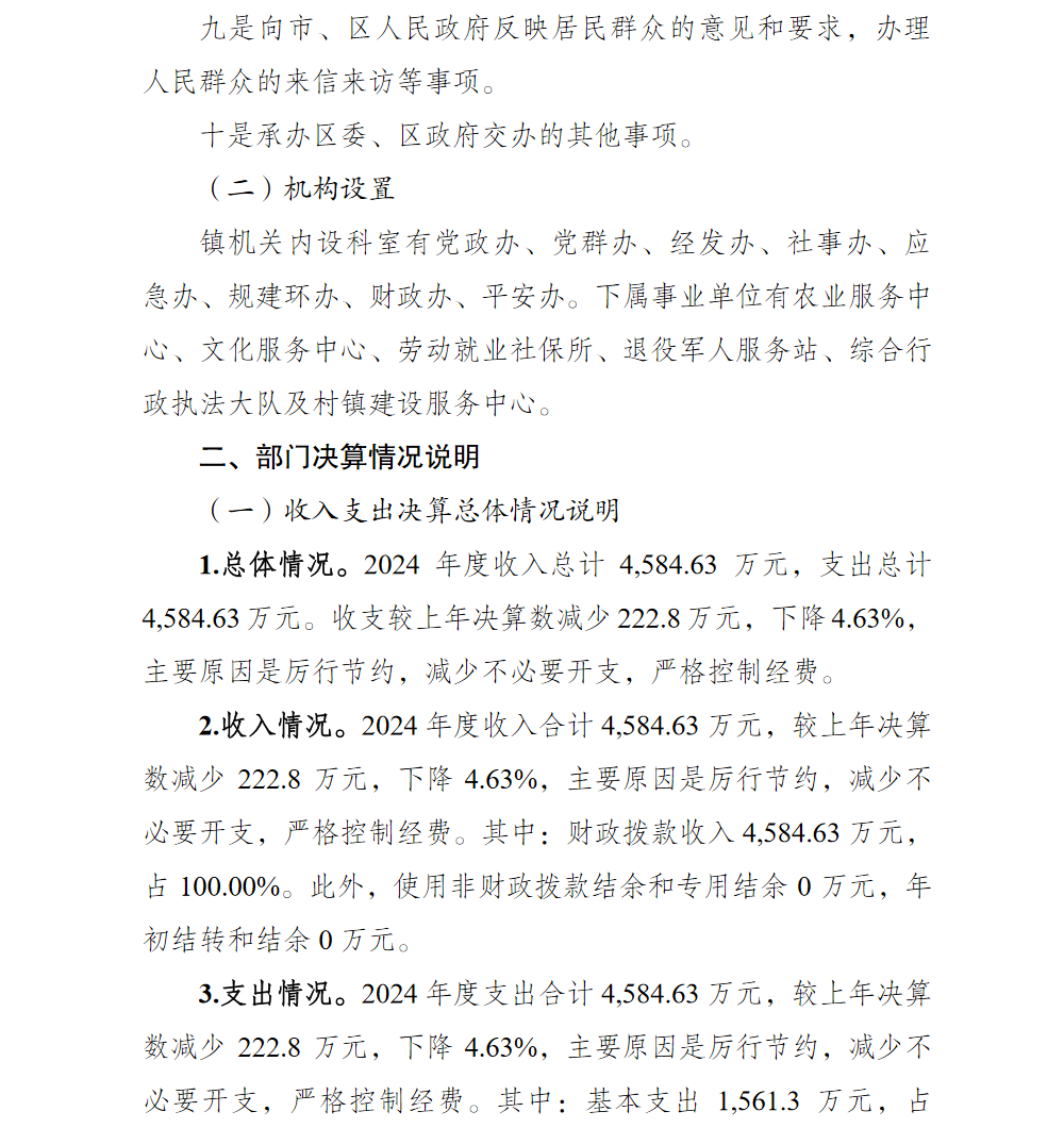 重庆市北碚区柳荫镇人民政府2024年部门决算情况说明